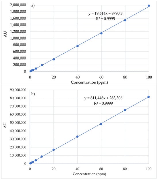 Calibration curves of Pio (a) and Cur (b) standards (n = 3).