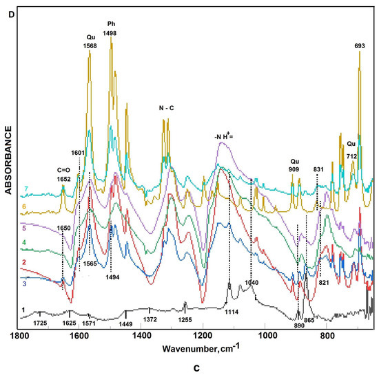 Fourier transform infrared (FTIR) spectra were recorded in the ATR mode using a HYPERION-2000 IR microscope (Bruker, Karlsruhe, Germany) coupled with a Bruker IFS 66 V/s FTIR spectrometer (Karlsruhe, Germany) (Ge crystal, scan 100, resolution 2 cm−1, range 600–4000 cm−1). Optical density was D = lgI0/I.