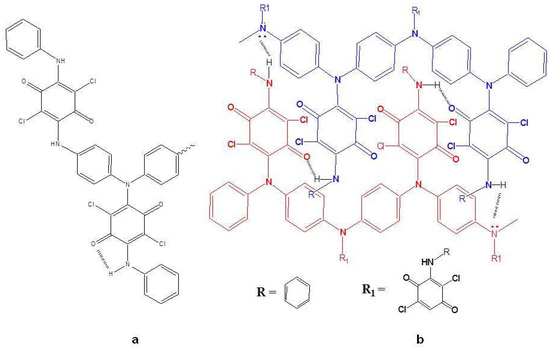 - Orlov, A.V.; Kiseleva, S.G.; Karpacheva, G.P.; Muratov, D.G. Peculiarities of Oxidative Polymerization of Diarylaminodichlorobenzoquinones. Polymers 2021, 13, 3657. [Google Scholar] [CrossRef]