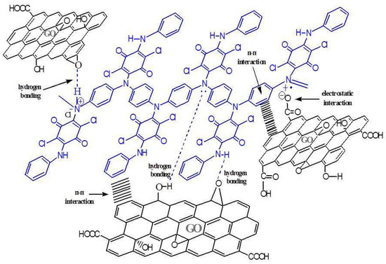 The resulting oligomers, being adsorbed on the GO surface, polymerized in acidic media in the presence of ammonium persulfate according to “head to tail” addition method [43,61].