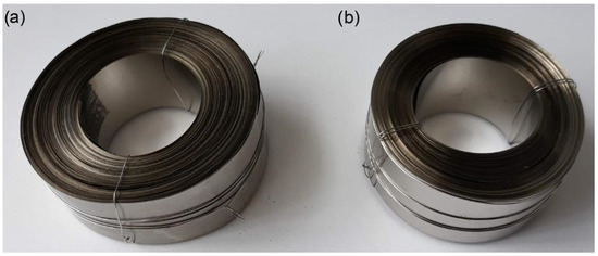 - Kmita, G.; Sekula, R.; Rybak, A.; Kozupa, M.; Klys, P. Method of Manufacturing an Amorphous Magnetic Core and Amorphous Magnetic Core. European Patent Application No. EP3035351B1, 20 February 2019. [Google Scholar]