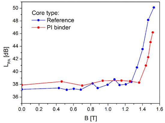 - Core bonded with PI becomes noisy at noticeably higher flux density and is two times less noisy than the reference core.