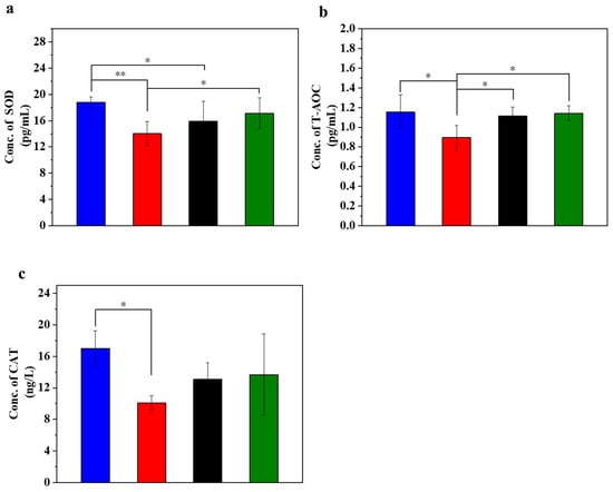 2.4.2. SOD, T-AOC, CAT Determination