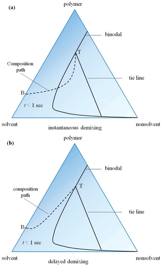 Non-solvent phase separation process: (a) path 1, (b) path 2 [].