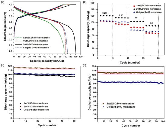 Advancements in portable electronic devices, wearable technology, electric vehicles, and energy storage systems are driving increasing demands for battery performance [,]. Lithium-ion batteries offer numerous advantages, such as a high operating voltage, an extended cycle life, minimal self-discharge, absence of memory effect, and more [,]. The separator plays a crucial role in lithium-ion batteries, serving two primary functions. Firstly, it acts as a physical barrier between the positive and negative electrodes, effectively prevent short circuits and ensure the battery’s safe operation. Secondly, it facilitates efficient ion transfer during both charging and discharging processes, guaranteeing the battery’s normal functionality. Therefore, extensive research on separator-related matters is imperative for advancing towards the next generation of high-performance battery systems since the separator significantly influences both safety and ion transfer in batteries.