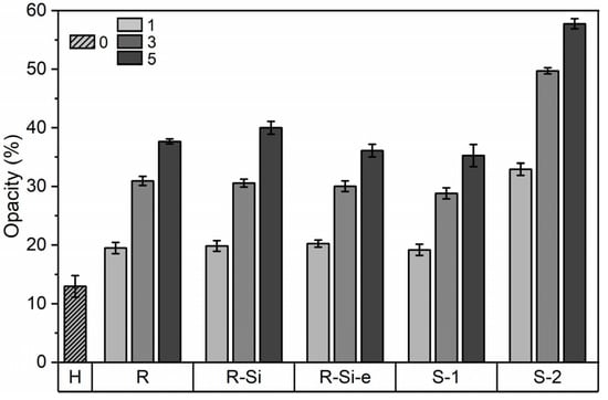 3.6. Colorimetric Properties and Opacity
