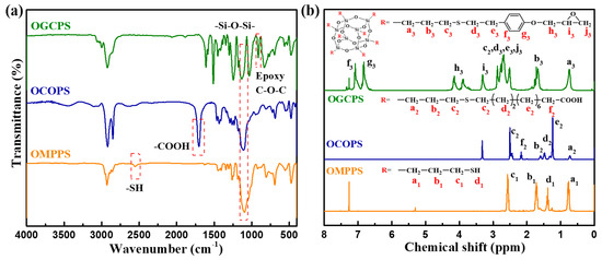 (a) FT-IR spectra of OMPPS, OCOPS, and OGCPS and (b) 1H NMR spectra of OMPPS, OCOPS, and OGCPS.