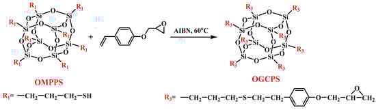 2.4. Synthesis of Octa (Glycidyl Phenyl Ethyl Thiopropyl) Polyhedral Oligomeric Silsesquioxane (OGCPS)