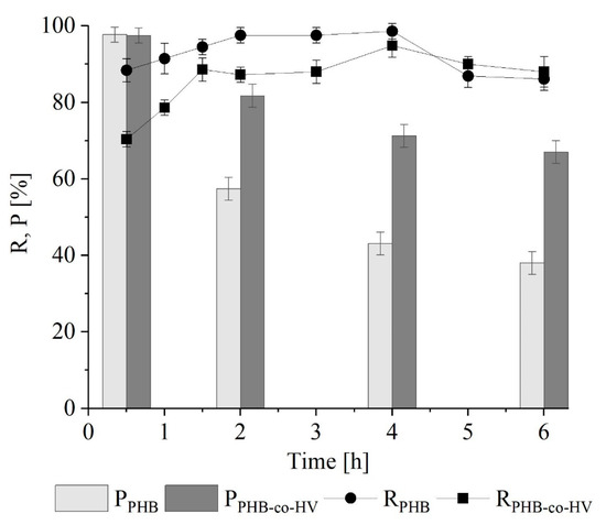 The purity of PHB and PHB-co-HV was calculated according to Equation (2):