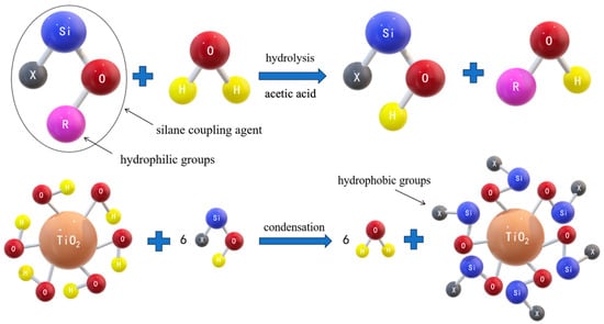Modification mechanism of titania nanoparticles by silane coupling agent.