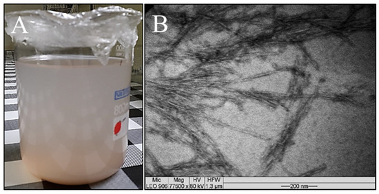 (A) Aqueous suspension of sisal nanofibers and (B) micrograph of sisal nanofibers.