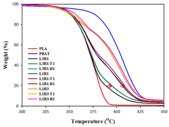 | L1B3-B1 | PLA/PBAT/CB | 25/75/1 * |