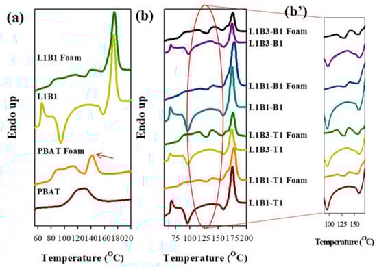 - Liu, W.; Chen, P.; Wang, X.D.; Wang, F.C.; Wu, Y.J. Effects of poly(butyleneadipate-co-terephthalate) as a macromolecular nucleating agent on the crystallization and foaming behavior of biodegradable poly(lactic acid). Cell. Polym. 2017, 36, 75–96. [Google Scholar] [CrossRef]