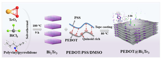 - Zheng, D.; Jin, H.; Liao, Y.; Ji, P. Bi2Te3 nanowires tuning PEDOT:PSS structure for significant enhancing electrical transport property. Mater. Lett. 2023, 338, 134019. [Google Scholar] [CrossRef]