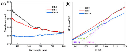 UV–Vis diffuse reflectance spectra (a) and corresponding bandgap energy (b) of PB-0, PB-5, and PB-10.