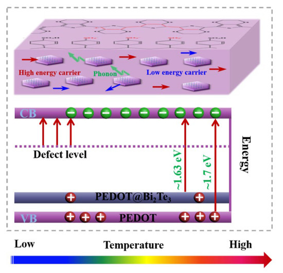 Schematic diagram of the thermoelectric improvement mechanism of PEDOT@Bi2Te3.