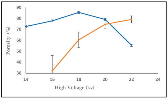 3.1.6. Effect of High Voltage with Salt on Nanofiber Diameter