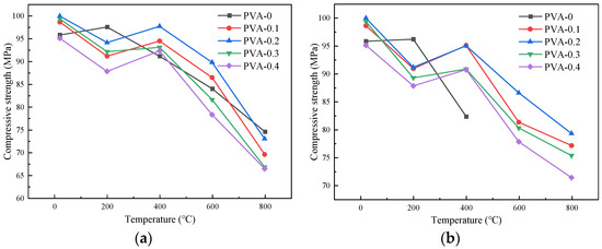 The compressive strength test results of the specimens with different PVA contents after different high-temperature actions and cooling treatments are given in Table 6.