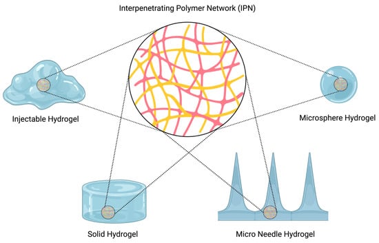Different hydrogel forms of IPNs (made by BioRender.com).