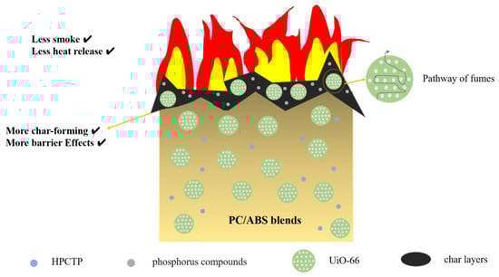 Illustration for PC/ABS blends’ flame-retardant mode of action.