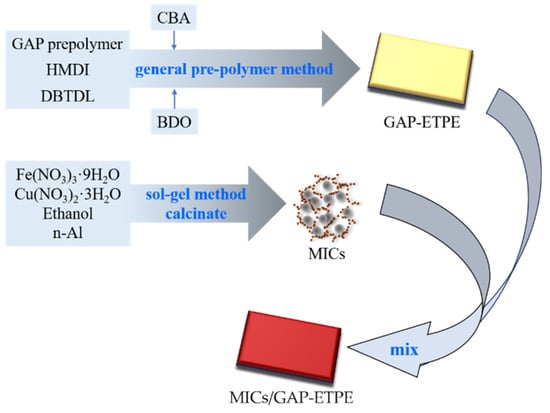 The whole preparation route of the MICs/GAP-ETPE samples is illustrated in Figure 1.