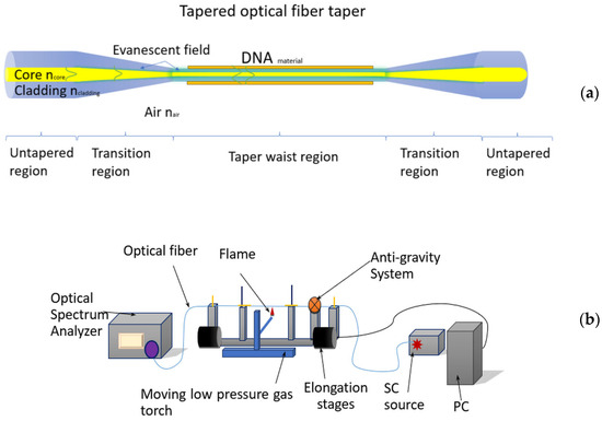 - Stasiewicz, K.A.; Krajewski, R.; Jaroszewicz, L.R.; Kujawińska, M.R. Świłło Influence of the tapering process on optical fiber refractive index distribution changes along the structure. Opto-Electron. Rev. 2010, 18, 102–109. [Google Scholar] [CrossRef]