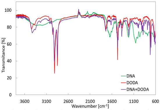 - Radko, A.; Lalik, S.; Deptuch, A.; Jaworska-Gołąb, T.; Ekiert, R.; Górska, N.; Makyła-Juzak, K.; Nizioł, J.; Marzec, M. Physicochemical characterisation of the DNA complexes with different surfactants. Polymer 2021, 235, 124277. [Google Scholar] [CrossRef]