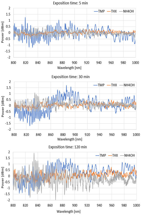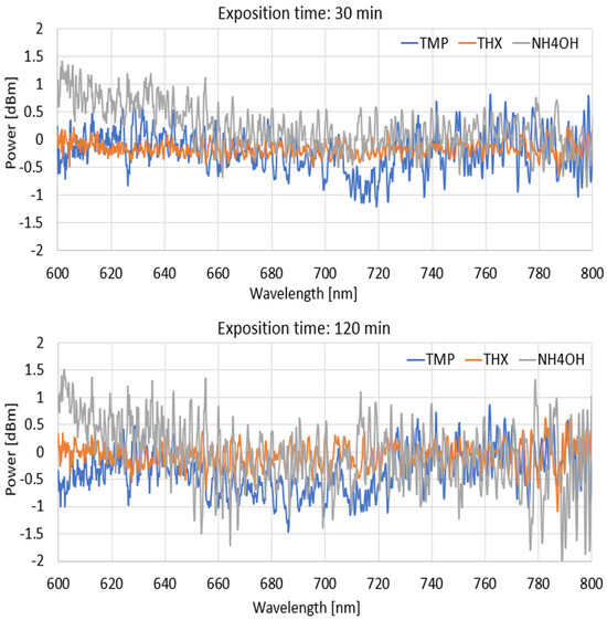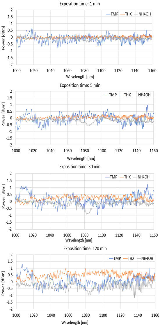 | Wavelength (nm) | 1 min (dBm) | 5 min/per min (dBm) | 30 min/per min (dBm) | 120 min/per min (dBm) |
