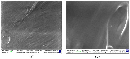 Micrographs for PPr + 10% CMC at magnifications (a) 5000× and (b) 20,000×.