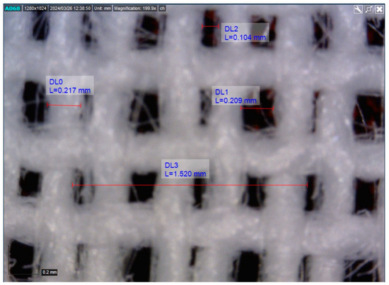 Figure 4 show microscopic images obtained using the Dino-Lite device reveal irregularities in the warp density—two adjacent warp yarns are closer together due to 2/2 reed threading. These observed irregularities in warp density can cause local variations in the fabric structure, making it crucial to analyze the fabric surface based on structural segments and their dimensions to understand how these irregularities affect the roughness profile.