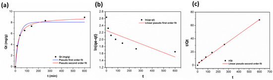 The corresponding linearized equation form of pseudo-first- and pseudo-second-order used were, respectively, Equations (5) and (6):