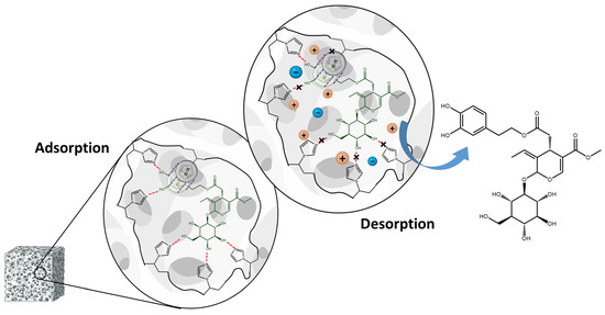 The proposed mechanism of oleuropein adsorption and desorption from poly(VI) is reported in Figure 6.