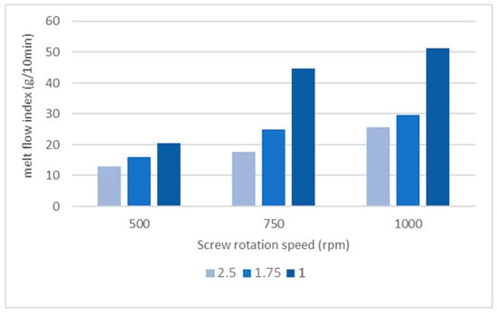 Effect of the feeding rate and screw rotation speed on the MFI.