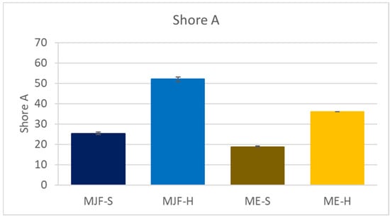 Shore A hardness of the investigated materials.