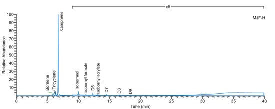 Thermal desorption (340 °C) gas chromatography–mass spectrometry (TD-GC/MS) of MJF-H sample.