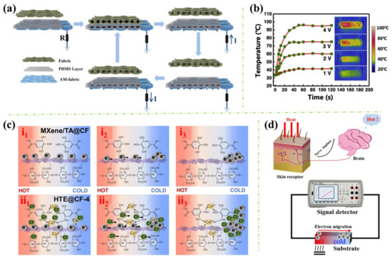 - Zeng, Q.; Wang, B.; Lai, X.; Li, H.; Chen, Z.; Xie, H.; Zeng, X. Multifunctional MXene-coated cotton fabric with enhanced thermopower for smart fire protection. Compos. Part A Appl. Sci. Manuf. 2023, 164, 107305. [Google Scholar] [CrossRef]