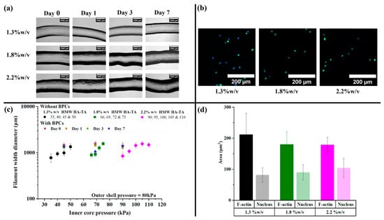 3.2. HMW HA-TA Bioink Properties and Bioprinting Process