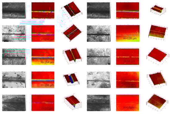 We used a #11 scalpel blade to make an “X-shape” scratch on the coated surface. Scratch depth and coating thickness were measured using a three-dimensional confocal concave–convex microscope.