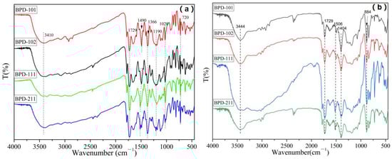 The FT-IR spectra of (a) BPD-x polymers and (b) BPD-x blend membranes.