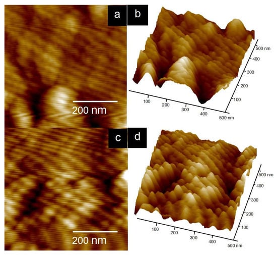 AFM tapping images of (a) BPD-102 and (c) BPD-111; 3D view of (b) BPD-102 and (d) BPD-111 membranes.
