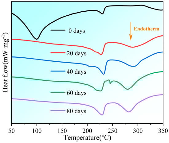 Changes in differential scanning calorimetry analysis of samples during aging process.