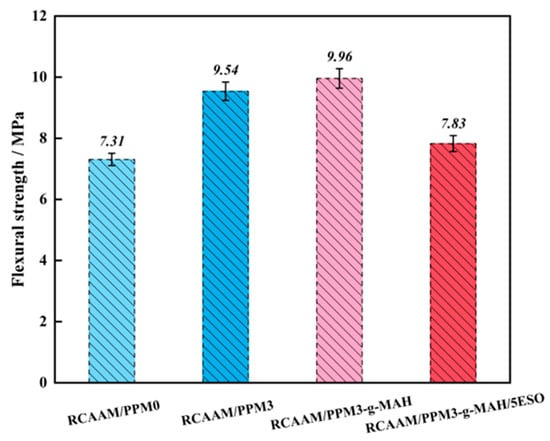 Effects of PPMs on flexural strength (RB) of RCAAMs.