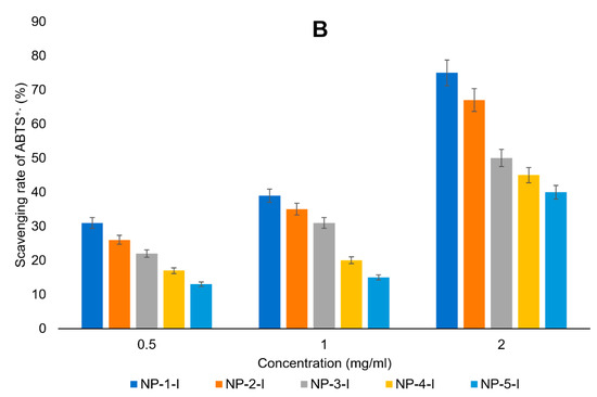 Antioxidant activity of polymers (A) and their nanoparticles (B).