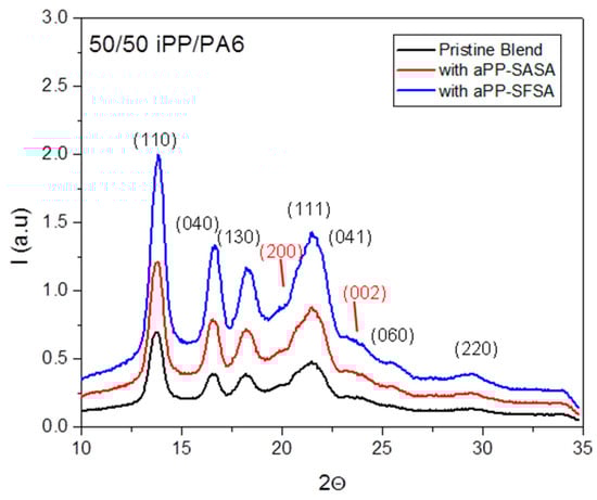 - García Martínez, J.M.; Areso, S.; Gómez, M.A.; Marco, C.; Collar, E.P. On the Changes of the PP Phase in Interfacial Modified PP/PA6 by Means of Succinic Anhydride or Succinyl-Fluoresceine/Succinic Anhydride Grafted Atactic Polypropylenes. A Synchrotron WAXS and SAXS Comparative Study. HASYLAB Annual Report 2003 Part I. pp. 957–958. Available online: http://hasyweb.desy.de/science/annual_reports/2003_report/index.html (accessed on 15 January 2022).