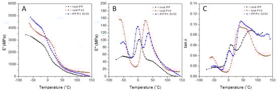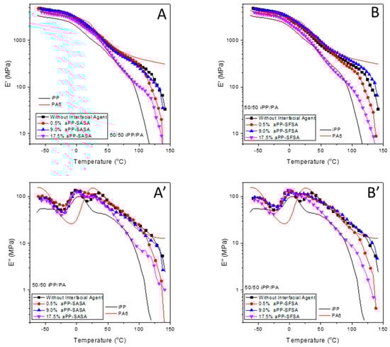 3.2.2. DMA of the Modified 50/50 iPP/PA6 Blends