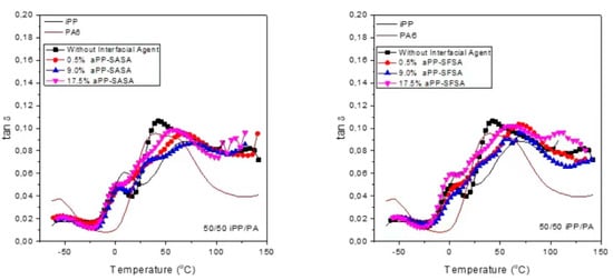 - Liang, Z.; Williams, H.L. Dynamic Mechanical properties of Polypropylene-Polyamide Blends: Effect of Compatibilization. J. Appl. Polym. Sci. 1992, 44, 699–717. [Google Scholar] [CrossRef]