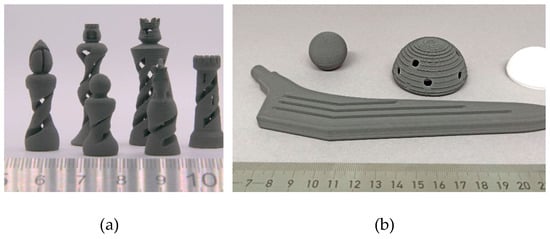 (a) Printed chess figures (7.5 wt.% lauric acid) and (b) printed hip endoprosthesis (5 wt.% lauric acid) with polymer inlay.