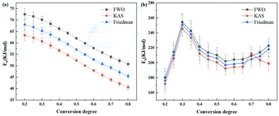 3.4.2. Calculating Eas by the Kissinger–Akahira–Sunose Method