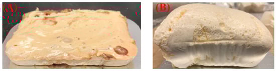 All of the phenolic foams described in this work were prepared from resol-type phenolic resin synthesized at a formaldehyde:phenol ratio of 1.5. The resin’s properties, especially its viscosity, solid content, and pH, play a critical role in the foam-making process, as they influence the distribution of the blowing agents, surfactants, and catalysts in the foaming resin and thereby the properties of the resulting foam [45,46]. Highly viscous resin prevents proper mixing, which results in a dense foam, whereas a low-viscosity resin causes an uncontrolled expansion of the resin mixture, and the corresponding foam will have a very low density and undesired properties. Hence, an appropriate viscosity is essential for uniform mixing of the foaming reagents in the resin [31]. Therefore, in this work, resin with a viscosity in the range between 8000 and 9000 mPa.s was used to make the various phenolic foams. The solid content of the resin was 79–82%, and its pH was 9.6.