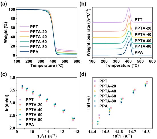 3.4. Thermal Stability and Thermal Degradation Kinetics of PPTA Copolymers
